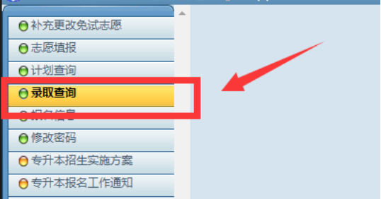 第三步:登录后点击“录取查询”即可查询录取信息