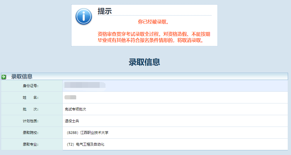 江西职业技术大学2026年专升本退役大学生士兵录取查询流程